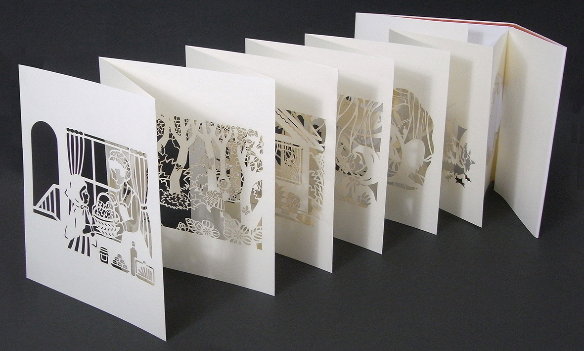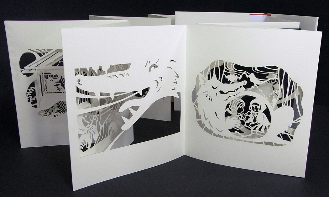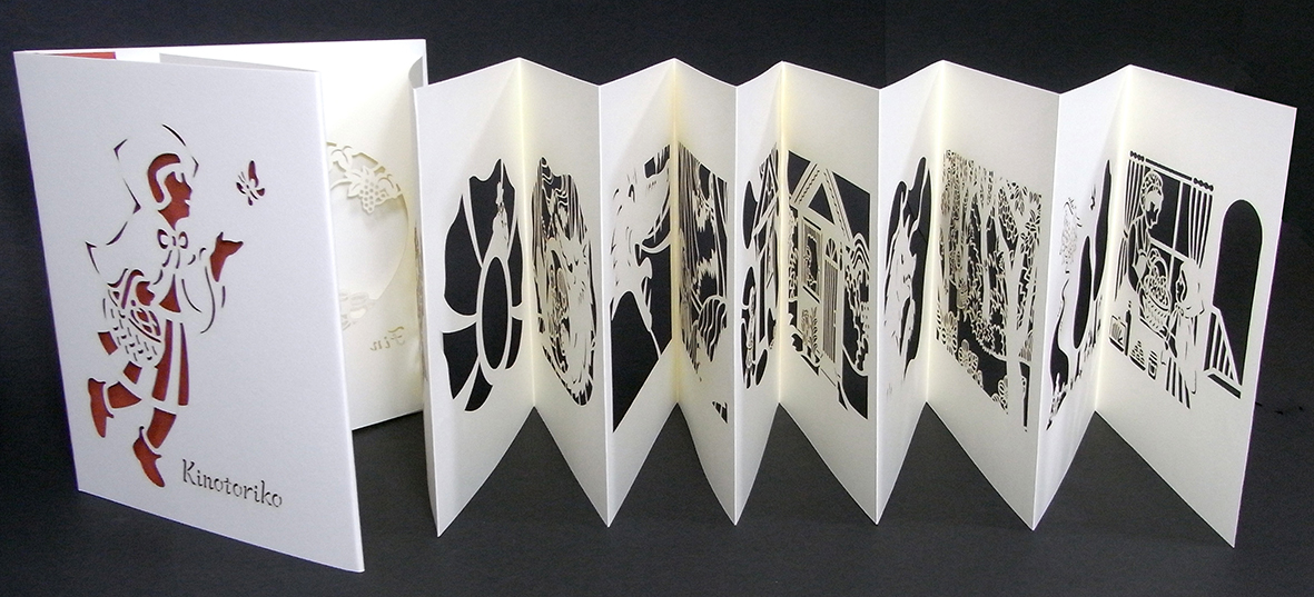 The image at left is the book, based on the KAMISHIBAI; rearranged and modified in accordion-fold style; the same format as the previous ones from Papiers Coupés.
