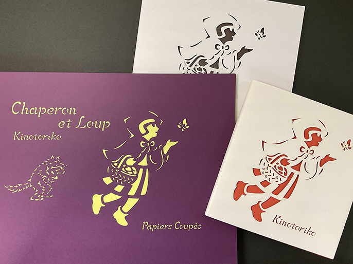 In June, 2025, “KAMISHIBAI—-picture-story show” is issued by the publisher “Papiés Coupés” in France. The papers are to be lit up from behind so that the laser-cut forms glow. By sliding in another paper from the side and overlaying it, the scene changes dramatically.